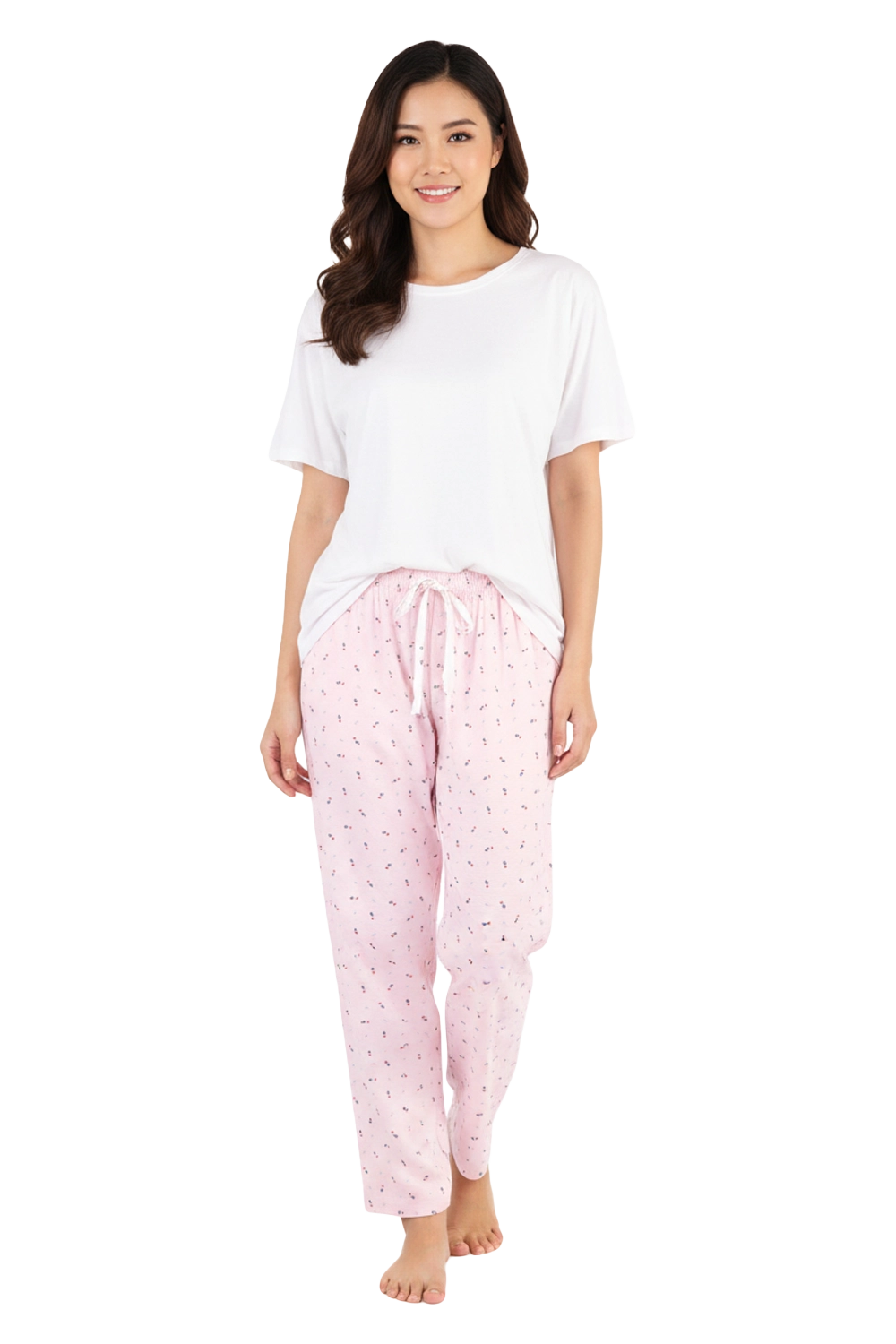 Pink Inpatient Pants with Floral Print